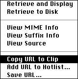 From this menu you can get retrieve the linked item, see information about the linked item, or get the URL of the linked item. The third to last option (Copy URL to Clip) is especially useful for copying URLs and pasting them into email messages without having to retrieve the linked item first.